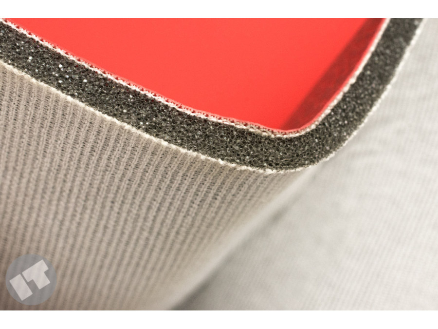 Artificial leather for dashboards (cockpits) does not have a foam backing, only a technical fabric directly on its underside.