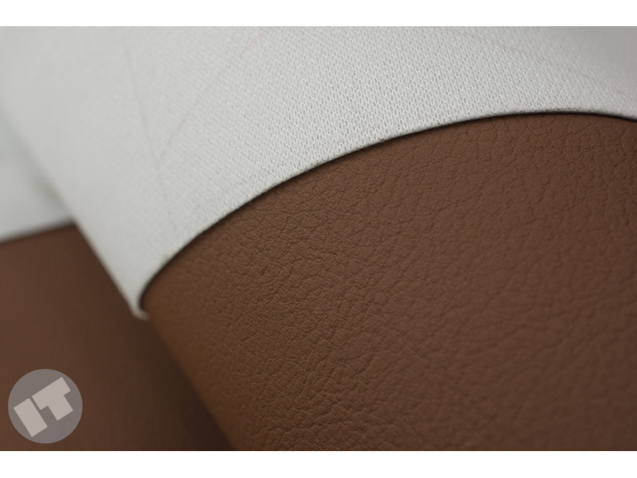 The first type is artificial leather laminated with PUR foam, i.e. with a sponge placed on the underside of the fabric, and is designed for front and back seats. They are sometimes additionally reinforced with technical fabric in the form of a mesh for better stability. A rarer solution is to use a felt backing.