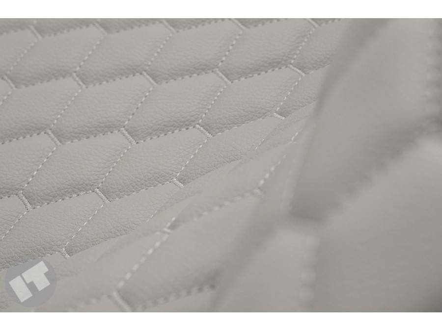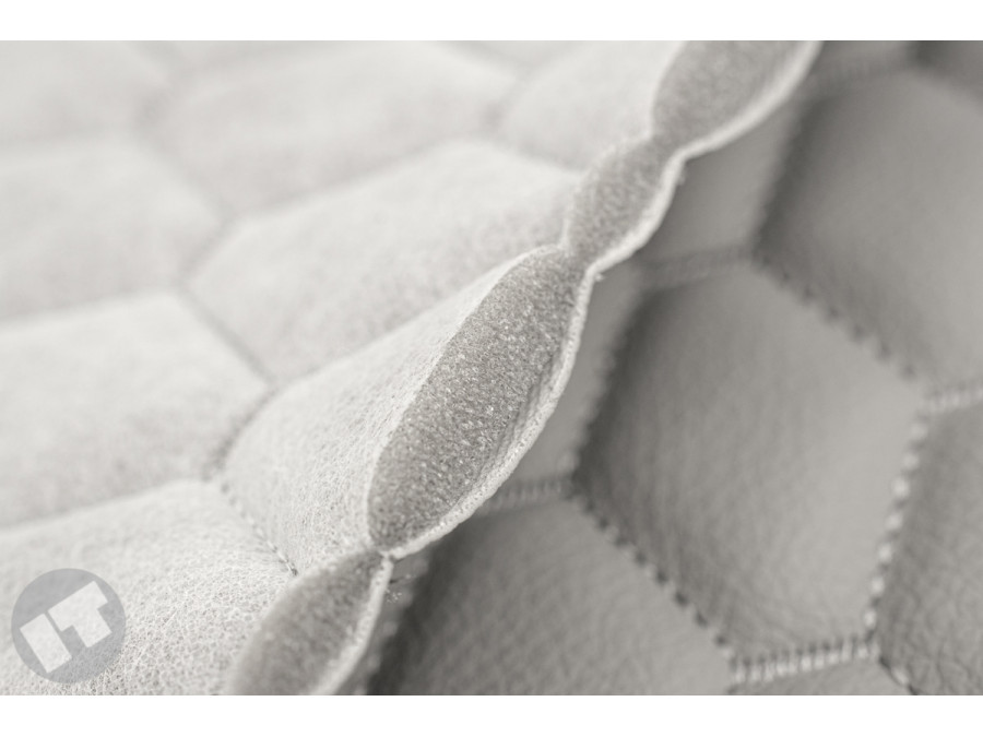 The first type is artificial leather laminated with PUR foam, i.e. with a sponge placed on the underside of the fabric, and is designed for front and back seats. They are sometimes additionally reinforced with technical fabric in the form of a mesh for better stability. A rarer solution is to use a felt backing.
