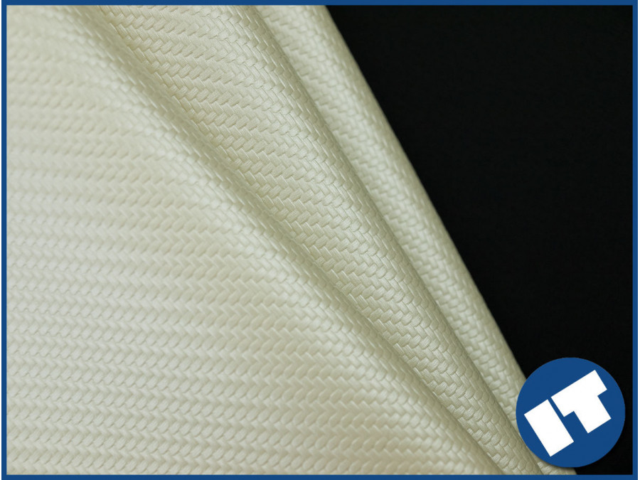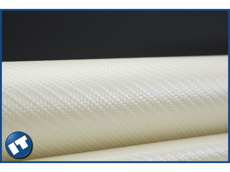 Materiał jest nawinięty na kartonową tubę, a cała rolka jest zapakowana w grubą, przezroczystą folię.